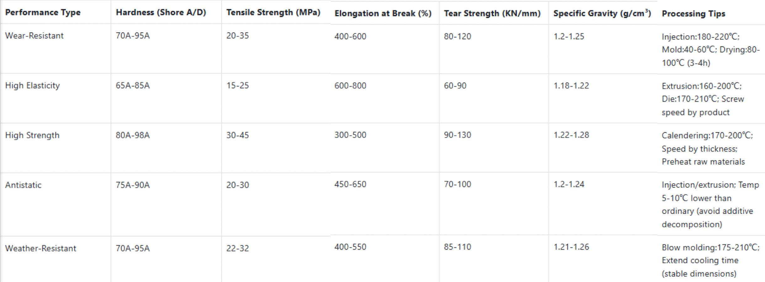 TPU modified compounds are produced through advanced modification processes, incorporating specific functional additives during manufacturing. They offer excellent performance adjustability, allowing properties like abrasion resistance and weather resistance to be tailored to requirements while maintaining fundamental mechanical properties. Crucially, their inherent elasticity and flexibility are preserved, facilitating subsequent processing and molding. Compared to standard TPU materials, these compounds deliver more targeted performance.